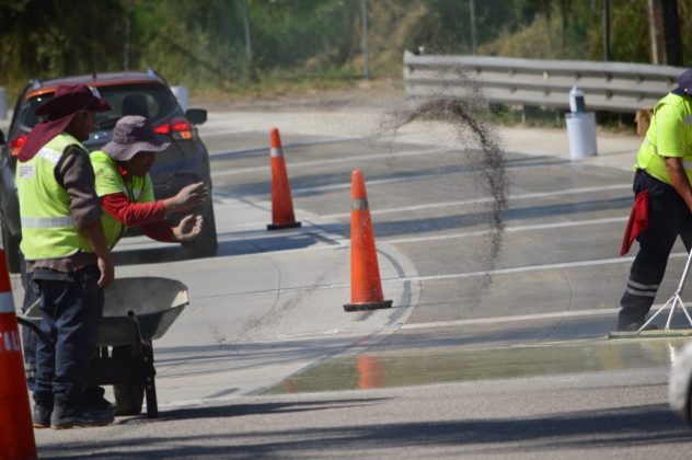 «Se inició la colocación de una superficie de alta fricción, esta va a ayudar que se incremente la fricción entra la llanta de los vehículos y la superficie de concreto, de igual manera, bajando de la zona de Arenales, se está ejecutando el drenaje pluvial».