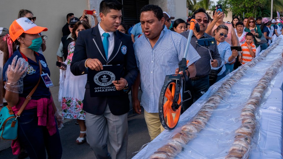 “En esta ocasión el intento ha sido por la línea de pan más larga del mundo, teniendo el principal reto de superar a Saltillo”, comentó Tapia en un mensaje a la multitud reunida en Tizimín, a unos 167 kilómetros de Mérida.