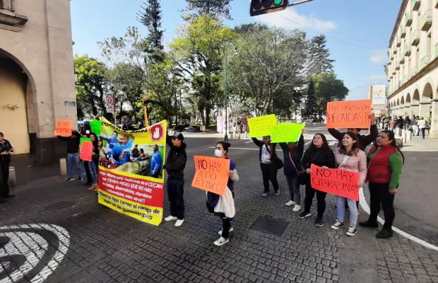 Xalapa, Ver.- Con el bloqueo a la calle Enríquez, padres de menores con cáncer que son atendidos en el Centro Estatal de Cancerología reclamaron la falta de medicamentos para continuar el tratamiento a sus pequeños.