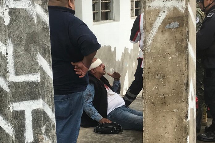 El acusado presentaba varios golpes en rostro y cuerpo, por lo que tuvo que ser atendido por la Cruz Roja Mexicana y llevarlo a una clínica.