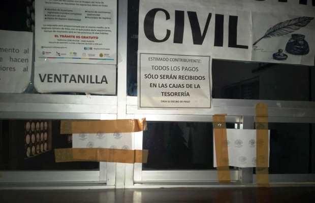 Fue este martes cuando el Síndico del Ayuntamiento, Julkio César Sosa Villalbazo, de extracción panista, junto con las dos regidoras acudieron a la oficina de Tesorería así como la Dirección de Goberanción y pegaron unos sellos con la leyenda clausurado.