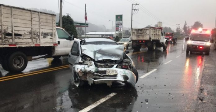 Dos personas lesionadas y cuantiosos daños materiales, fue el saldo de un accidente automovilístico sobre la carretera Xalapa-Perote, a la altura de El Rosario, un vehículo particular chocó contra un autobús.