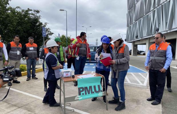 Personal de Protección Civil implementó las medidas de repliegue y evacuación por sismo en su sede, a fin de que 184 mujeres, 201 hombres, 4 visitantes y 4 personas con discapacidad desocuparan el lugar en tan sólo 4 minutos.