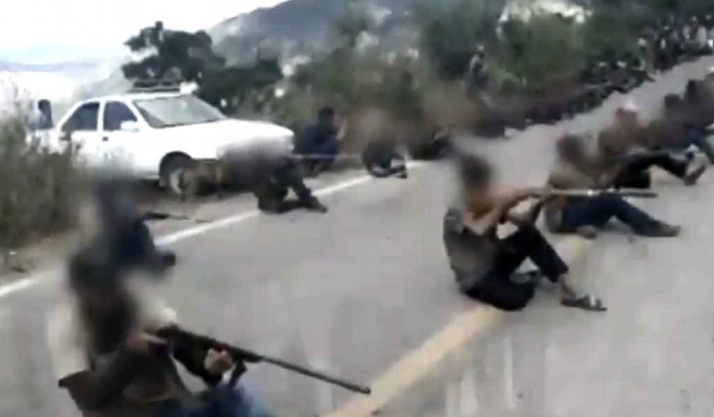 Los mayores de 12 años portan escopetas, los menores toman palos de madera con forma de rifles, pues se están adiestrando para formar parte de la guardia civil.