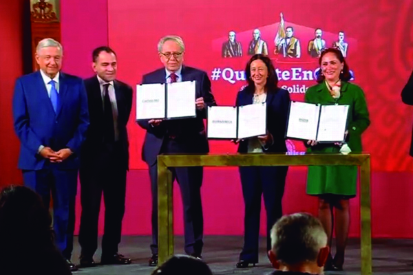 «Firma que le garantiza a México 77.4 millones de dosis, en un periodo de marzo a agosto serán entregadas a México. Esas vacunas se liquidarán cuando arriben a México.