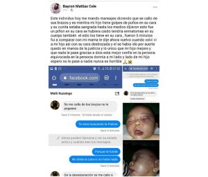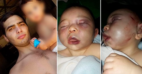Este individuo hoy me mando mensaje diciendo que se le cayo de los brazos y es mentira, tiene golpes de puños en su cara y su cunita estaba sangrada, hasta los médicos dijeron que esto fue un puñetazo en su cara, si se hubiera caído tuviera hematomas en su cuerpo también y sólo fue en su cara.