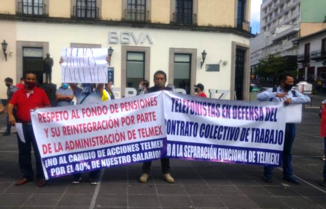 Xalapa Ver.- En la plaza Lerdo se manifestaron trabajadores jubilados de Telmex encabezados por Héctor Amado Salazar pues, dicen que la empresa «quiere aniquilar el contrato colectivo de trabajo».