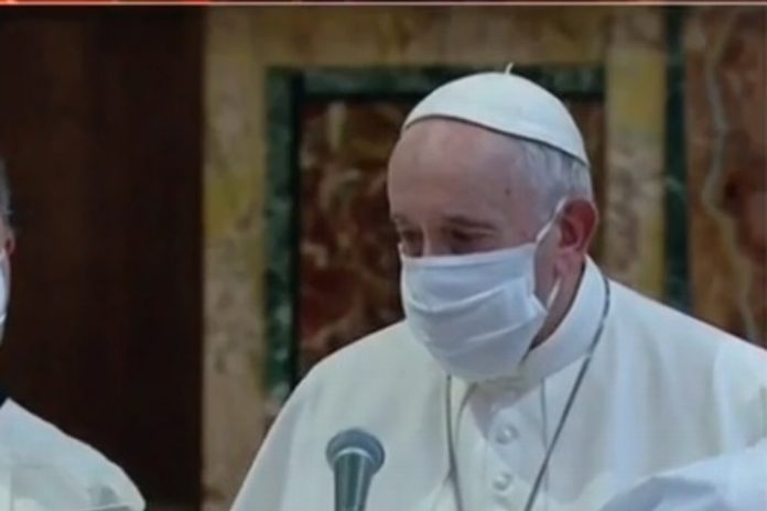 Previo a esta aparición, el Papa Francisco sólo portaba cubrebocas en un automóvil que lo llevaba a sus audiencias semanales en el Vaticano.