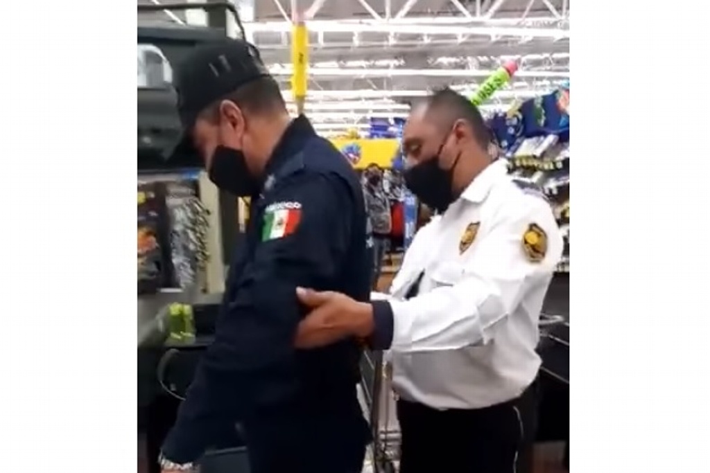 Un policía del municipio de Nezahualcóyotl, Estado de México, fue descubierto cuando intentaba robar algunos productos de una tienda en las inmediaciones del Bordo de Xochiaca.