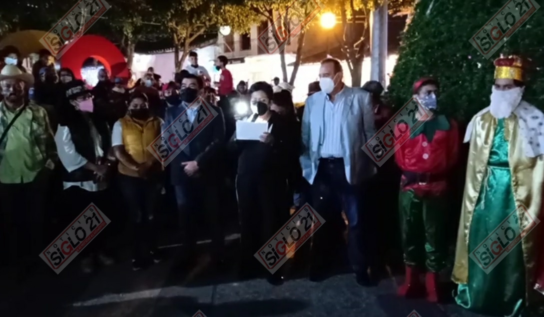 En punto de las siete de la noche, la alcaldesa encendió miles de luces multicolor de la denominada «Villa Iluminada» que ya adornan las principales calles del Pueblo Mágico.
