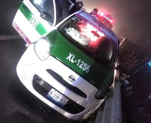 Fue minutos antes de las diez de la noche que en el Cuartel de Bomberos se recibió el llamado de auxilio pues un taxi se había accidentado arriba del puente del libramiento de Coatepec, entre el Bulevar y la entrada hacia Pacho Viejo.