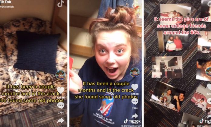 Según queda recogido en un video de TikTok publicado por el usuario @drewskiostrich, hace unos meses una amiga suya compró este sofá en la tienda Goodwill por tan solo 20 dólares, y hace poco halló en él varias fotos, aparentemente, de estudiantes de los años 80. Ahora los jóvenes quieren encontrar a los dueños de las fotos y esperan que los usarios de TikTok les ayuden a encontrarlos.