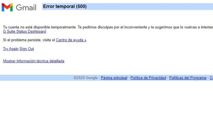 Los errores van desde “algo salió mal” en YouTube hasta “hubo un error. Por favor, inténtelo de nuevo más tarde. Eso es todo lo que sabemos ”cuando intentamos iniciar sesión en el producto de correo de la empresa.