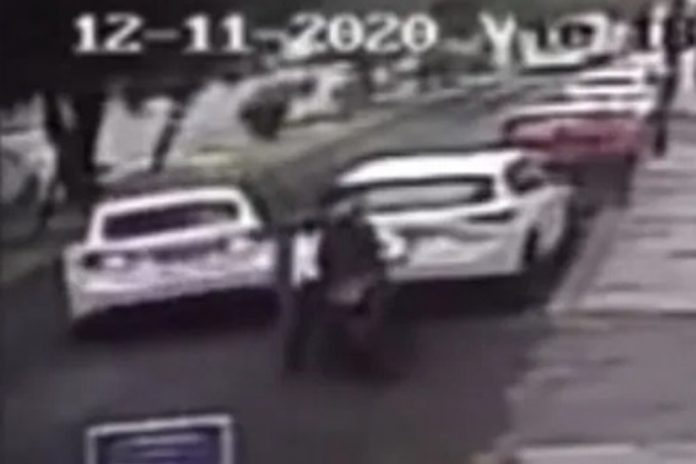 La grabación fue realizada justo en el intento de asalto en Morelia, Michoacán, por cámaras de seguridad sobre la avenida Camelinas, y muestra cuando dos hombres armados intentaron despojar de su vehículo a una persona, al salir de un negocio. logrando evadirlos y huir.