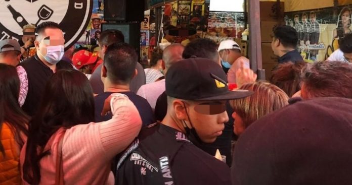 Policías de la Ciudad de México prefieren no intervenir. Dos se acercan a la multitud, pero sólo dan un vistazo antes de marcharse entre los puestos que comparten paredes con la posada clandestina. Pero son los rostros de los oficiales, tapados con cubrebocas, los que recuerdan que es 2020, el de la pandemia, el de los millones de enfermos.