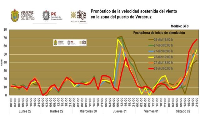 El más reciente reporte del CEEC, organismo dependiente de la Secretaría de Protección Civil de Veracruz, estima que los vientos serán de menor intensidad a los pronosticado días previos.