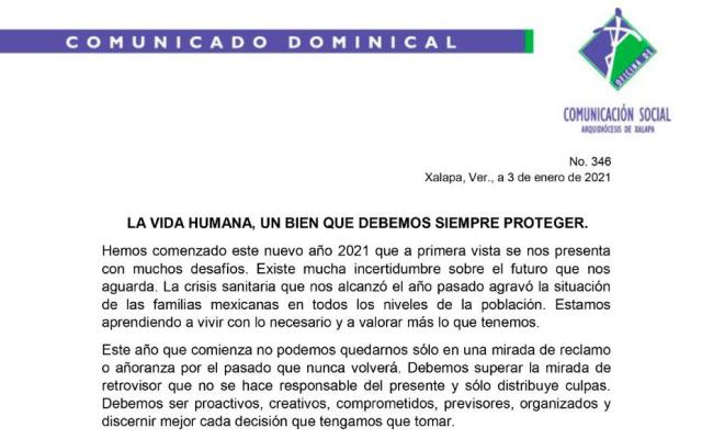 Xalapa, Ver.- La Arquidiócesis de Xalapa adelanta un 2021 con desafíos e incertidumbre sobre el futuro «que nos aguarda».