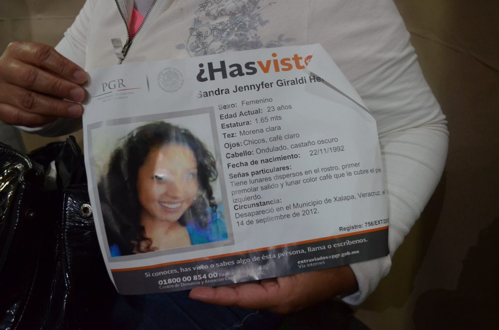 Sandra Jennyfer Giraldi Hernández, morena clara, pelo ondulado, ojos risueños y unos perfectos dientes blancos, desapareció el 14 de septiembre del 2012 cuando salió de su casa en Marina Nacional -al norte de la ciudad- a la Universidad de Xalapa a sus clases de inglés. La joven universitaria, entonces de19 años, no alcanzó a llegar al aula. Durante casi ocho años y medio, su madre, Graciela Hernández Tenorio de 52 años, se había abstenido de hacer público su caso, teme -con razón- la estigmatización de la prensa: “Luego ponen que los desaparecidos andan en malos pasos, que se van con el novio, que andan metidos en drogas”.