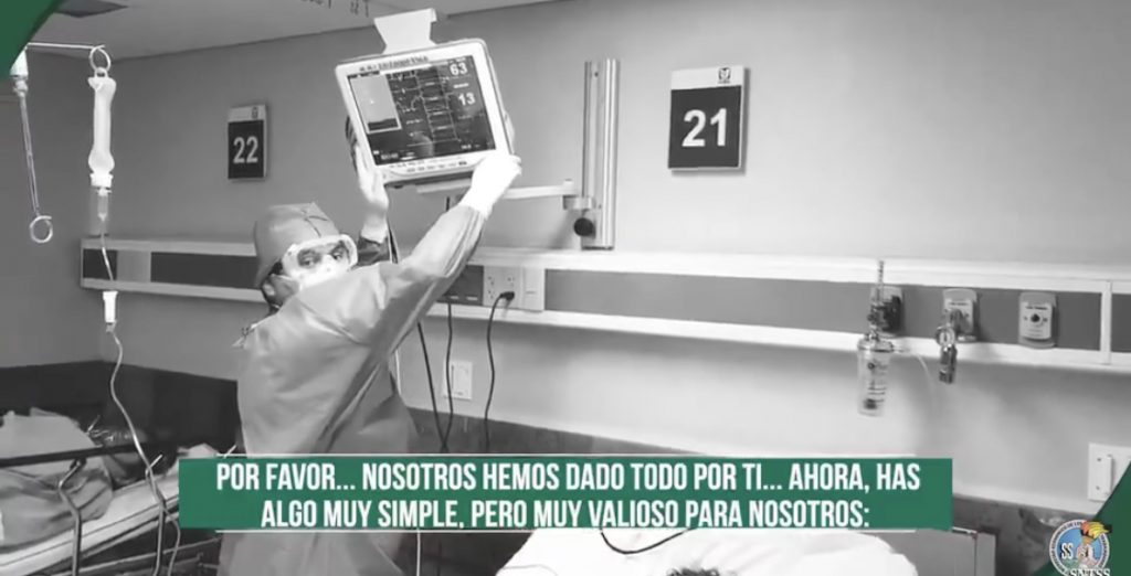 “Nosotros hemos dado todo por ti, ahora te suplicamos; salva la nuestra, la tuya y la de los demás. Si no nos ayudas, no vamos a resistir, nosotros hemos dado todo por ti, ahora haz algo muy simple, pero muy valioso para nosotros: quédate en casa, quédate en casa, quédate en casa. Si te cuidas, nos cuidas y nos cuidamos todos”, expresaron a través de un video difundido por el Sindicato Nacional de Trabajadores del Seguro Social (SNTSS).