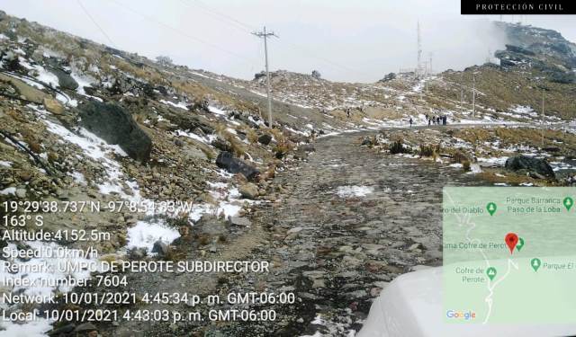 Carlos Gómez, el titular de PC en Perote, informó que se registró la primera nevada en esta temporada, aunque fue escasa y no alcanzó a presentarse en la comunidad de «El Conejo».