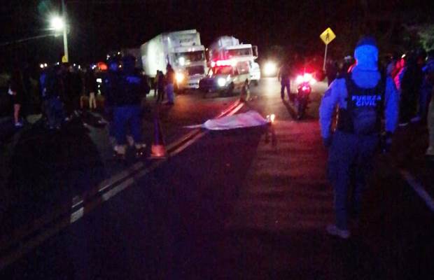 Xalapa, Ver.- Un motociclista perdió la vida mientras que su acompañante resultó gravemente herida al ser atropellados por un camión de carga en la carretera a Perote, a la altura de Piletas.