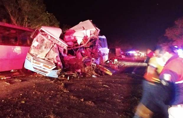 Tierra Blanca, Ver.- Una persona perdió la vida mientras que otros once resultaron heridos al chocar un trailer y dos autobuses de turismo en la carretera federal La Tinaja-Tierra Blanca la noche de este sábado.