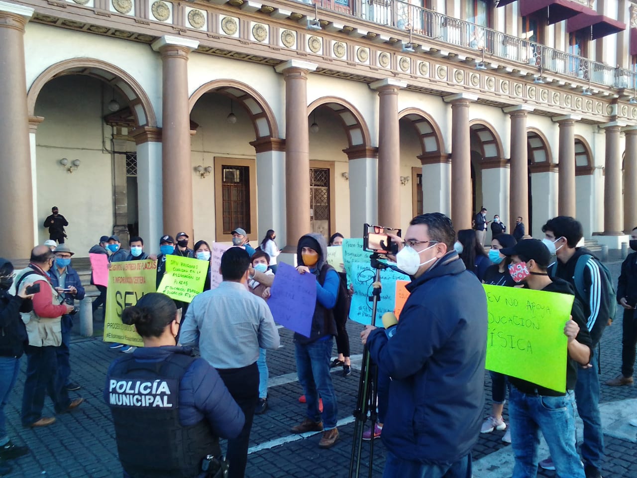 Al mismo tiempo, maestros de educación física protestaron para exigirle a la Secretaría de Educación de Veracruz la asignación de plazas y claridad en el proceso de admisión al Servicio Profesional Docente de este ciclo.