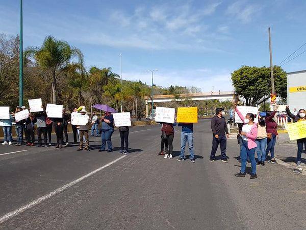 Xalapa, Ver.- Integrantes de Antorcha Campesina se manifestaron este miércoles en la dirección de Espacios Educativos para exigir que se cumpla con el programa Escuelas al Cien, cierran la circulación en la carretera federal Xalapa-Veracruz con dirección a esta capital.
