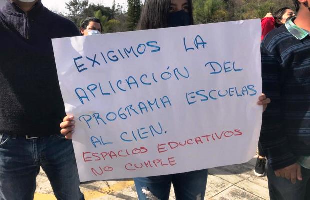 Desde el año 2015 están pendientes la conclusión de obras de infraestructura educativa presupuestadas en el programa Escuelas al CIEN, en los últimos meses los estudiantes se han quejado de que los hacen dar muchas vueltas y no les han resuelto nada, aún quedan 40 obras pendientes, que suman un total de 10 millones de pesos que están en riesgo de perderse dado que el programa tiene como fecha límite de aplicación el próximo junio de 2021.