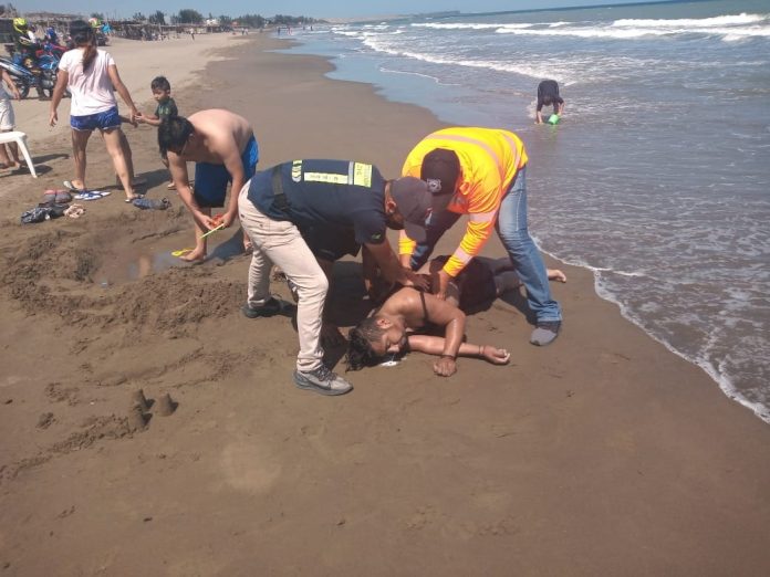 Rescatan a bañista de morir ahogado en playa de Chachalacas