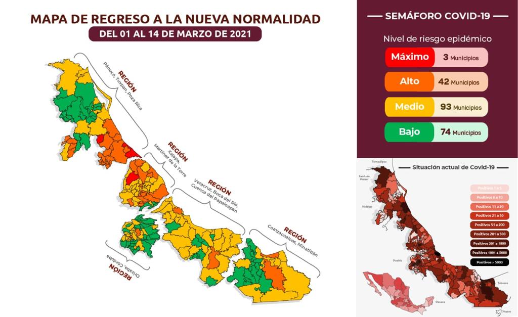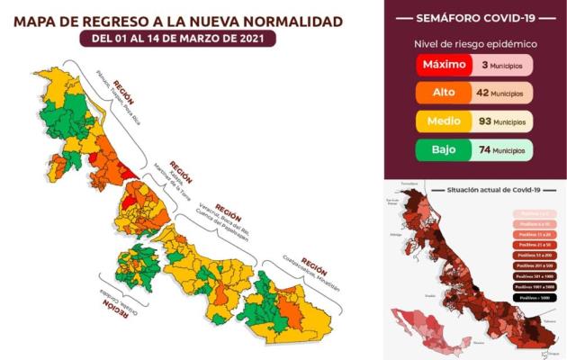 De acuerdo con la Secretaría de Salud federal, Veracruz permanecerá en color amarillo (riesgo medio) del Semáforo de Riesgo Epidémico, del lunes 01 al domingo 14 de marzo.