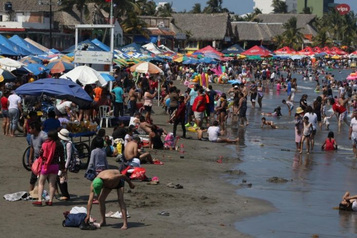 Este domingo nuevamente las playas de Veracruz lucieron abarrotadas de turistas que llegaron de diferentes municipios y estado aledaños para disfrutar del puente vacacional.