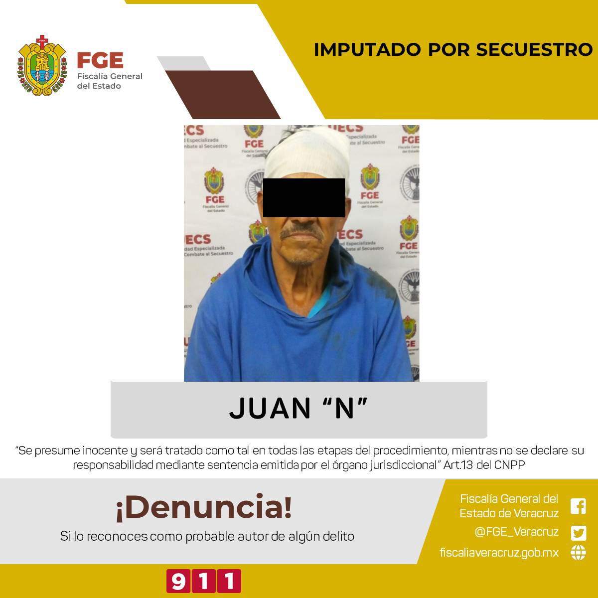Los hechos que se le imputan a Juan “N” ocurrieron el 9 del mes en curso en Teocelo, cuando probablemente privó de la libertad a una mujer de datos reservados.