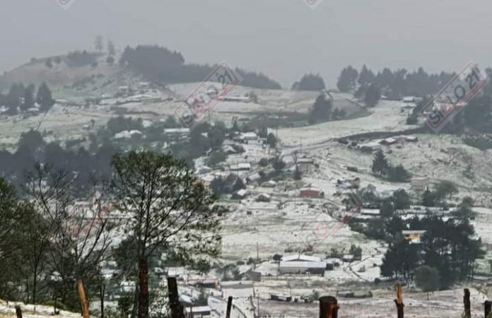 Xico, Ver.- Esta tarde una fuerte granizada afecto a comunidades de la zona alta de Xico y las faldas del cofre de Perote, se dejó sentir en comunidades como Tonaláco y Positos.