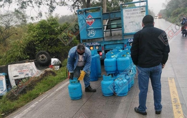 Fue poco después de las siete de la mañana que el conductor de una camioneta repartidora de gas perdió el control de la unidad, saliéndose del camino y terminando por volcar a un lado de la carretera a la altura de «El Chico».