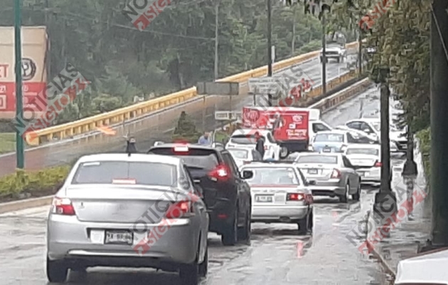 Fue en el carril con rumbo al Pueblo Mágico, en la entrada del «Puente Nuevo», donde una camioneta de carga y dos autos chocaron quedando las unidades cruzadas sobre el pavimento.