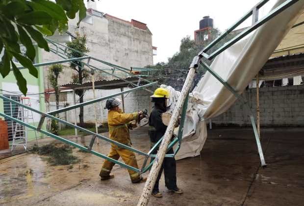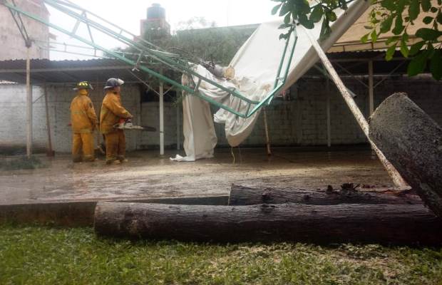 El derrumbe del árbol dejó dañada una carpa de acero, mismo que había sido instalada para el operativo de aplicación de la vacuna a los adultos mayores, así como una parte del un techado de lámina del estacionamiento de los maestros.