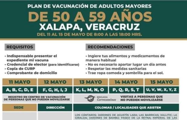 Por medio de una publicación en la red social Facebook, el delegado de programas federales en Veracruz, Manuel Huerta, informó sobre el inicio de la vacunación desde el martes 11 y hasta el sábado 15 de mayo.