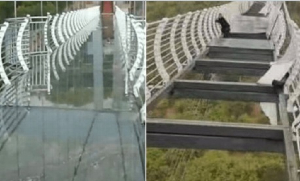 Colapsó un puente de vidrio en China, del cual un turista se aferró para no caer al vacío; permaneció sobre el puente durante algunos minutos hasta que llegaron los bomberos para ponerlo a salvo, resultando lesionado.