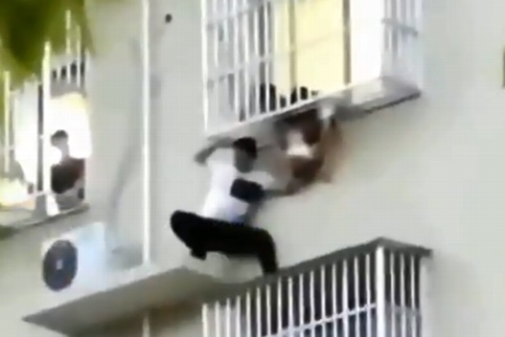 En redes sociales circula un video que muestra el momento en que un hombre evita que una niña de dos años cayera desde el sexto piso de un edificio en la ciudad de Hunan, China.
