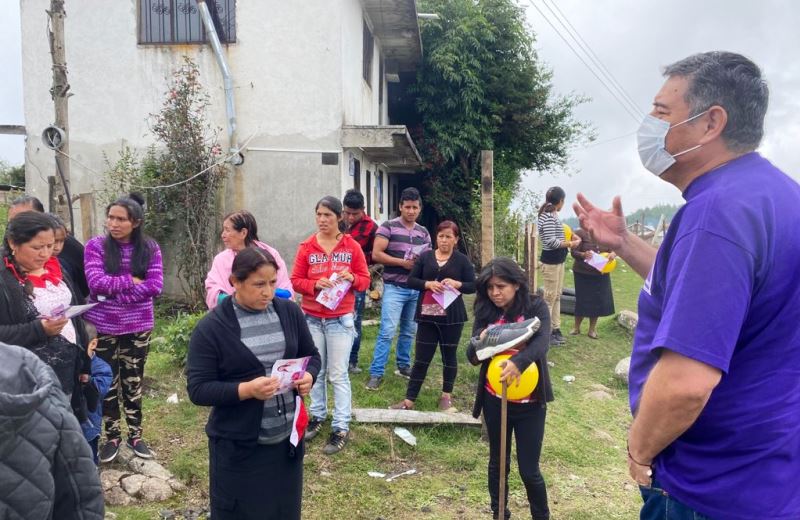 A su paso por los hogares de esta zona alta de Coatepec, mujeres y hombres se acercaban a saludar y escuchar al candidato Independiente Javier Verónica.