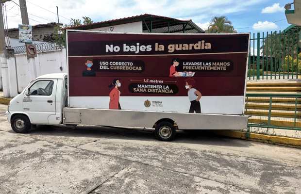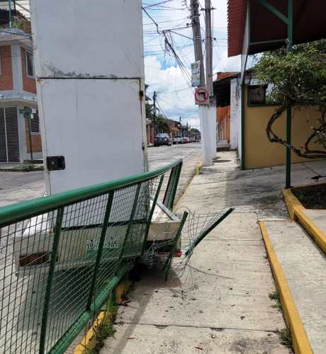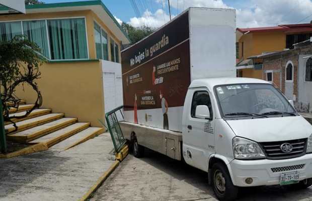 Fue alrededor de las dos de la tarde que un camión con anuncio publicitario de «No Bajes La Guardia» de la Secretaría de Salud, rompió parte de la valla del plantel educativo con la parte trasera de la unidad.
