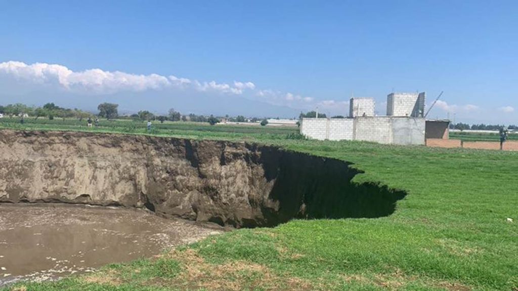 Fue durante las primeras horas del domingo cuando vecinos del municipio de Juan C. Bonilla, Puebla, reportaron la aparición de un socavón de al menos 100 metros de diámetro y 20 metros de profundidad en terrenos de cultivo, los cuales se encuentran a espaldas de una planta industrial, que también colinda con las empresas alemanas de Audi y Volkswagen, respectivamente.