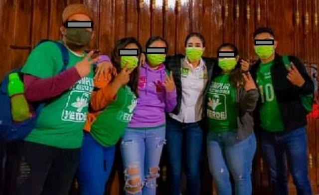 Teocelo, Ver.- Muchachos afiliados al programa federal «Jóvenes Construyendo el Futuro» habrían sido utilizados para hacer proselitismo durante el cierre de campaña de la candidata del Partido Verde Ecologista, Mara Chama, señalaron pobladores de este municipio.
