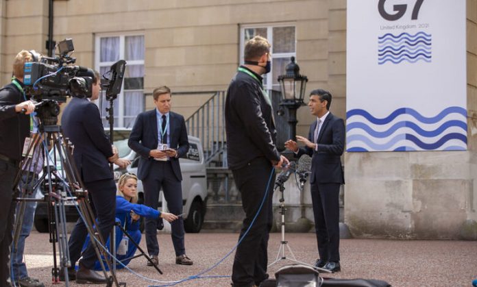 El grupo de los siete países más industrializados, cuyos ministros de Exteriores y de Finanzas celebran una reunión de dos días en Londres, se comprometieron con un impuesto mundial para las grandes empresas de «al menos el 15%», según un comunicado del G7 publicado el sábado.