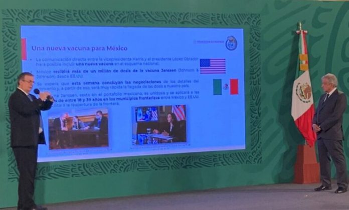 En conferencia matutina el Secretario de Relaciones Exteriores de México, Marcelo Ebrard, dijo que México ocupa el sexto lugar en el mundo de mayor número de dosis contra Covid-19 aplicadas, además dijo que al recibió a la Vicepresidente de Estados Unidos, Kamala Harris, anuncio que el 3 de junio recibirán más de un millón de dosis de la vacuna johnson & johnson.