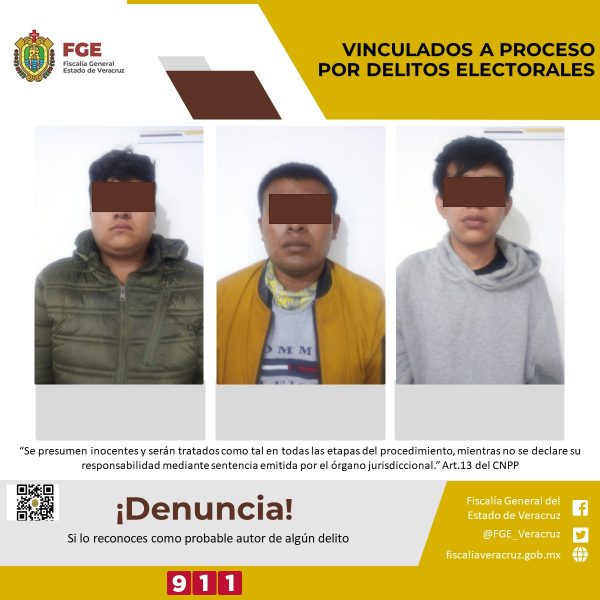 La Fiscal explicó que Axel “N”, Michelle “N” y Emmanuel “N” fueron vinculados a proceso luego de que fueran identificados como probables responsables de un delito electoral, por hechos ocurridos el pasado 6 de junio a las afueras de las oficinas del Organismo Público Local Electoral (OPLE) en Nogales.