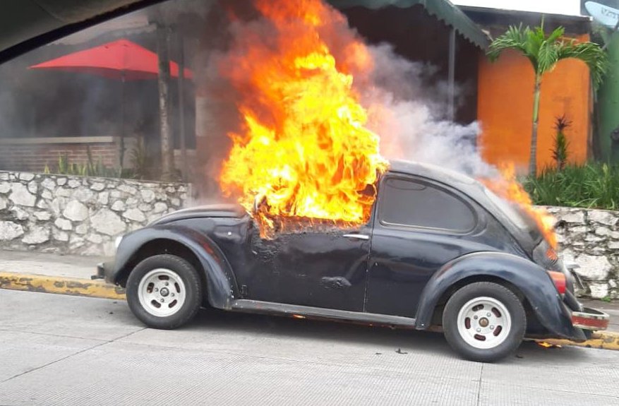 No se reportaron personas lesionadas, el vehículo fue consumido en su totalidad por el fuego.