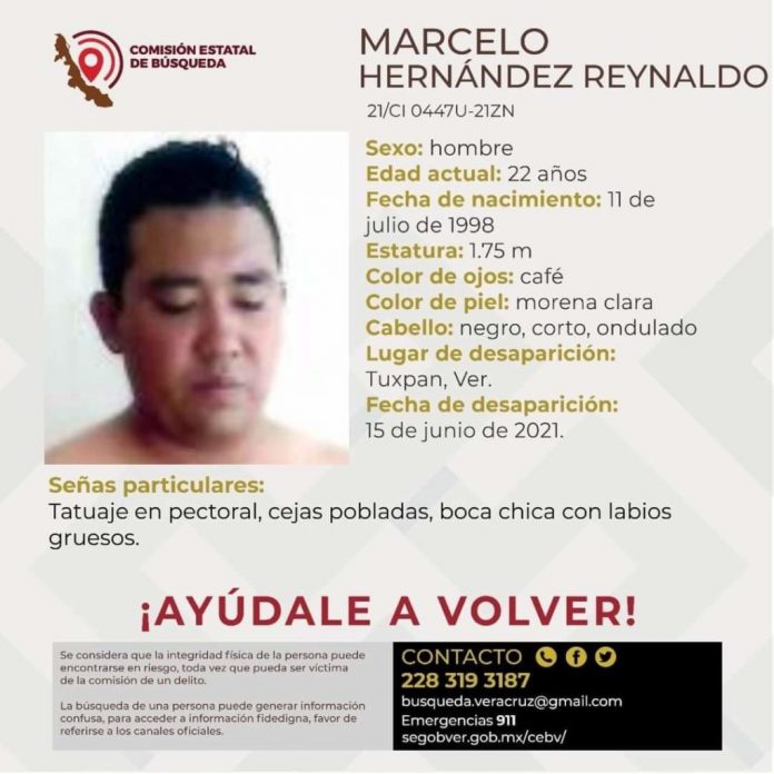 Poza Rica, Ver.- Familiares de Marcelo Hernández Reynaldo, reportaron ante la Fiscalía General del Estado con sede en Tuxpan, la desaparición de esta persona, por lo que solicitan a las autoridades correspondientes inicien la labor de búsquda.