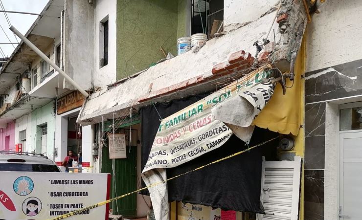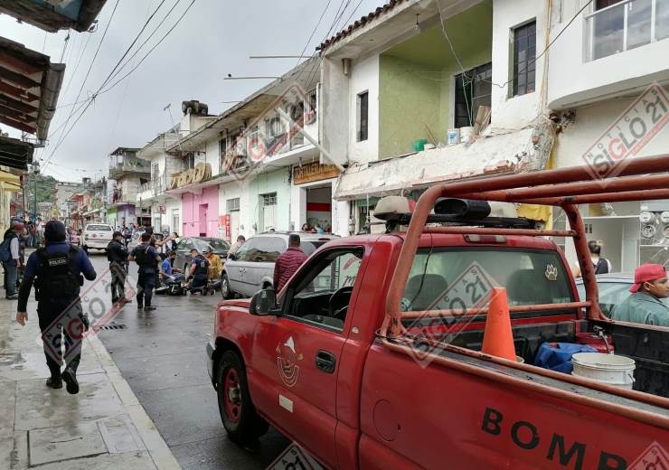Coatepec, Ver.- Cuatro personas resultaron heridas cuando se desplomó el alero de un local comercial en la calle Juan Soto casi esquina Arteaga de este Pueblo Mágico.
